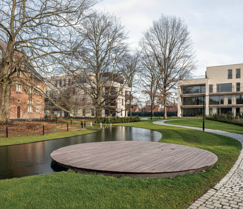 Aan de rand van het centrum van Herenthout ligt Park Hooghuys, een woonproject dat rust en groen samenbrengt in een autoluwe parkomgeving. De nieuwe residenties zijn zorgvuldig geïntegreerd in de historische parktuin rond het voormalige Hof van Plaisantie, een traditioneel breedhuis dat al sinds de 16de eeuw het toneel is van adellijke pracht. De site ontvouwt zich vandaag tot een idyllisch parkdomein. Centraal ligt een vijver, die met een houten vlonder en ligstoelen aan het rietveld een plekje biedt om te relaxen. Wandelpaden door het park leiden je langs nog meer zorgvuldig aangelegde rustplekjes onder de bomen, waar de tijd even stil lijkt te staan. Het enige wat je hoort, is het zachte ritme van de natuur. In Park Hooghuys word je bovendien getrakteerd op een mooi stukje geschiedenis.