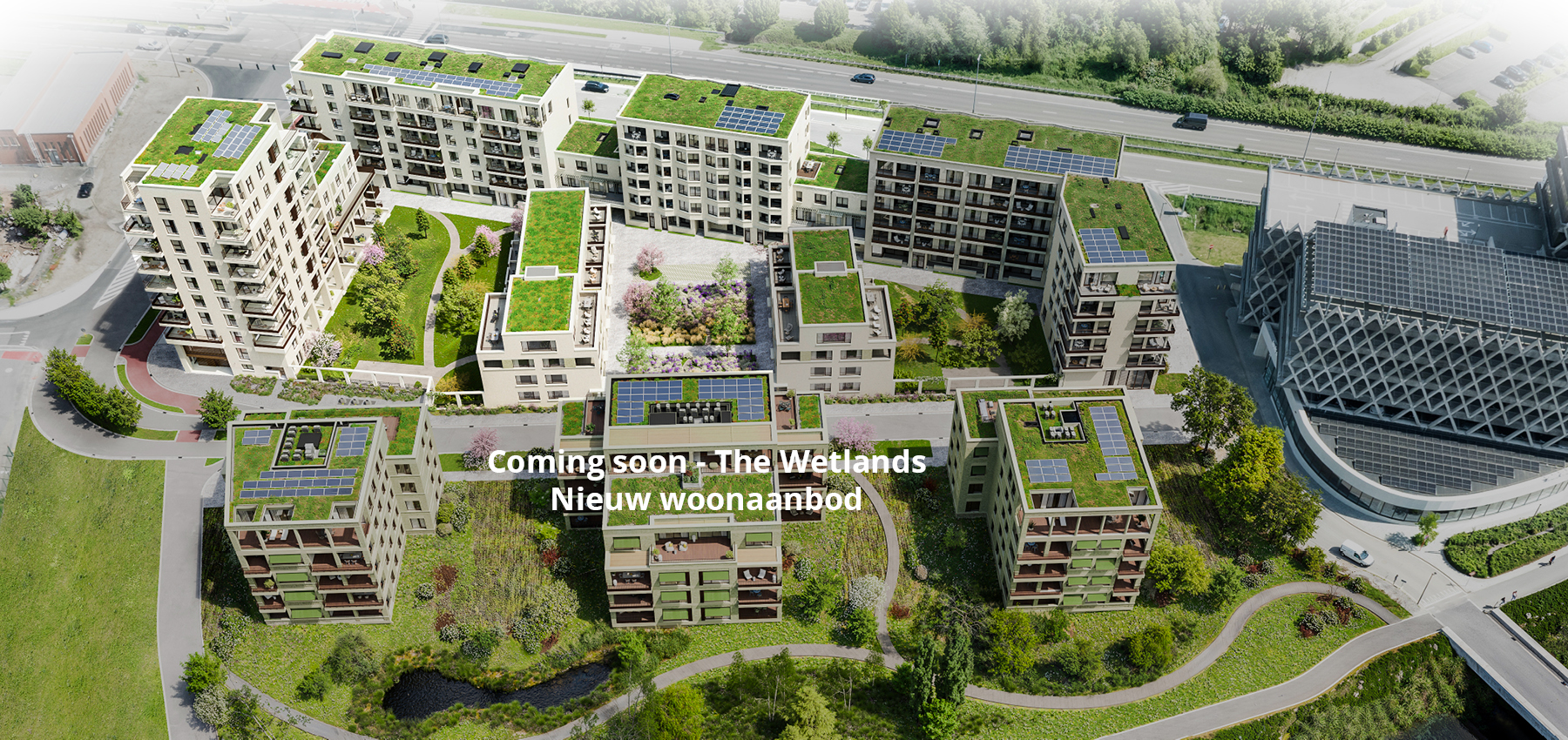 Waar u ook woont in Wattland, uw woning richt zich steeds naar de collectieve tuinen die uitsluitend bestemd zijn voor de bewoners én een gezellig publiek pleintje met mooie bomen en overvloedige beplanting.
